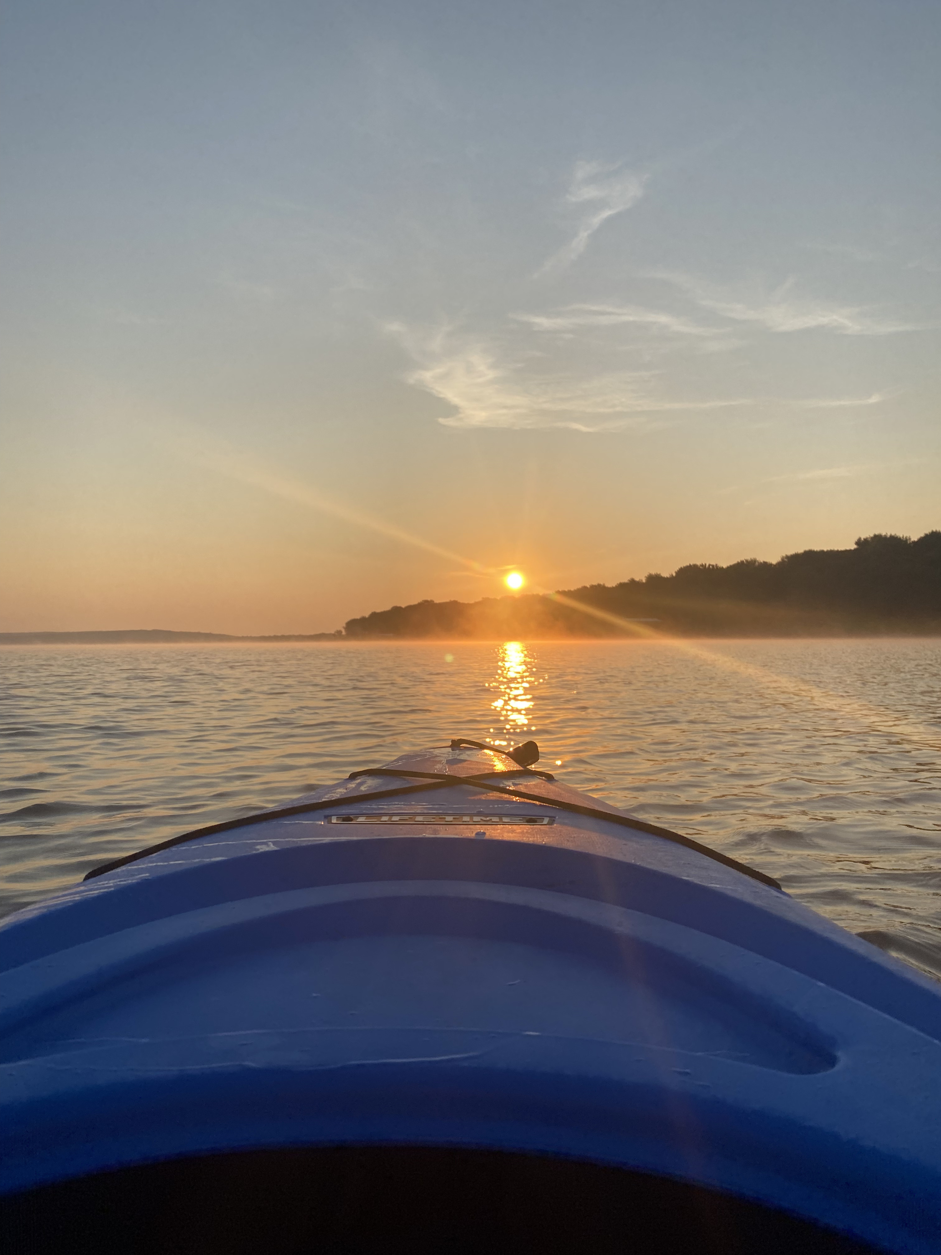 Getting down the water the first thing I noticed was just the stillness of the water with that light early morning mist rolling over it. The sun was just coming up and the breeze coming off the water was nice and cool. Knowing the Oklahoma heat that was coming later, I soaked it in! I paddled a ways out from the shore to where I could get a better view of the sunrise. As a did, there were roosters crowing, birds chirping, and geese calling as they flew overhead. All reverberating in the nearby trees, creating this echo sound that I don’t totally know about to describe but I was in awe of creation for a moment.